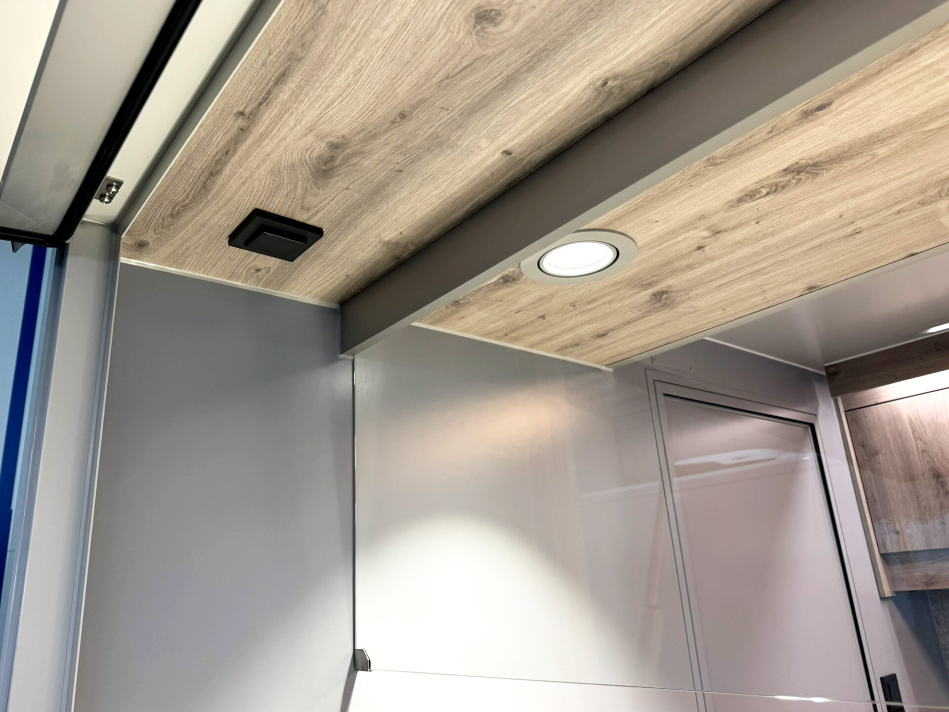 - Steckdosen in der abgehängten Decke: 1 x verkäuferseitig über dem Bord, 1 x kundenseitig vor der Windschutzverglasung