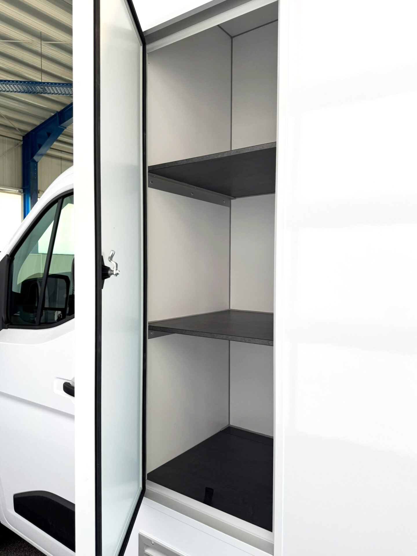 - 2 Glaswerbetafeln, beschriftbar. Auf Tür Spießkühlschrank sowie auf der oberen Hälfte der Einstiegstür