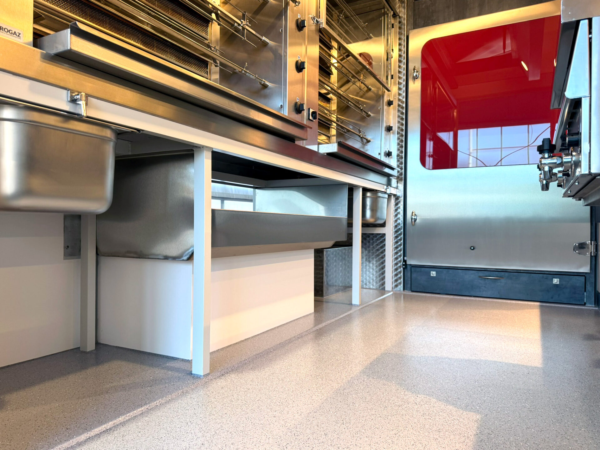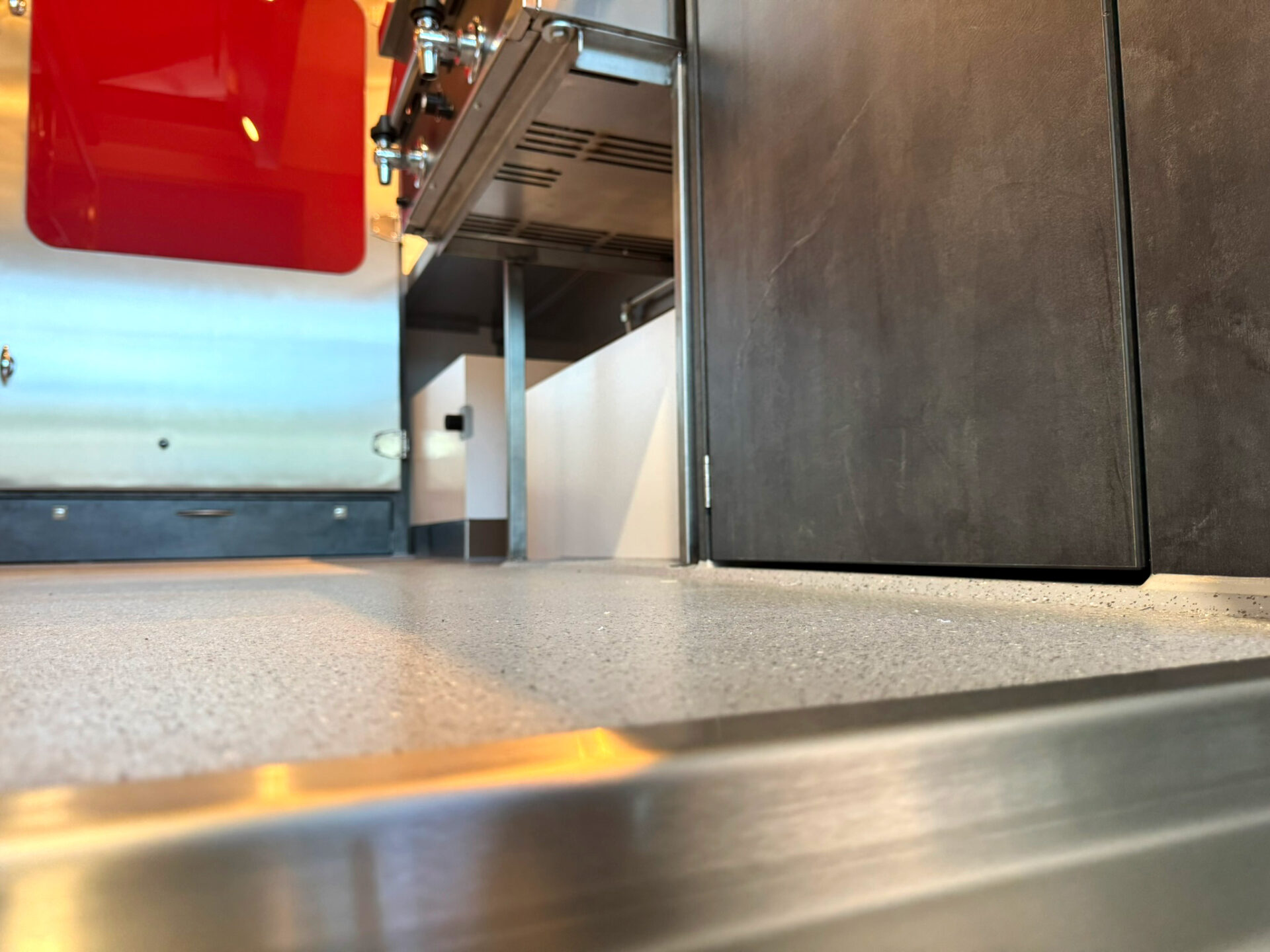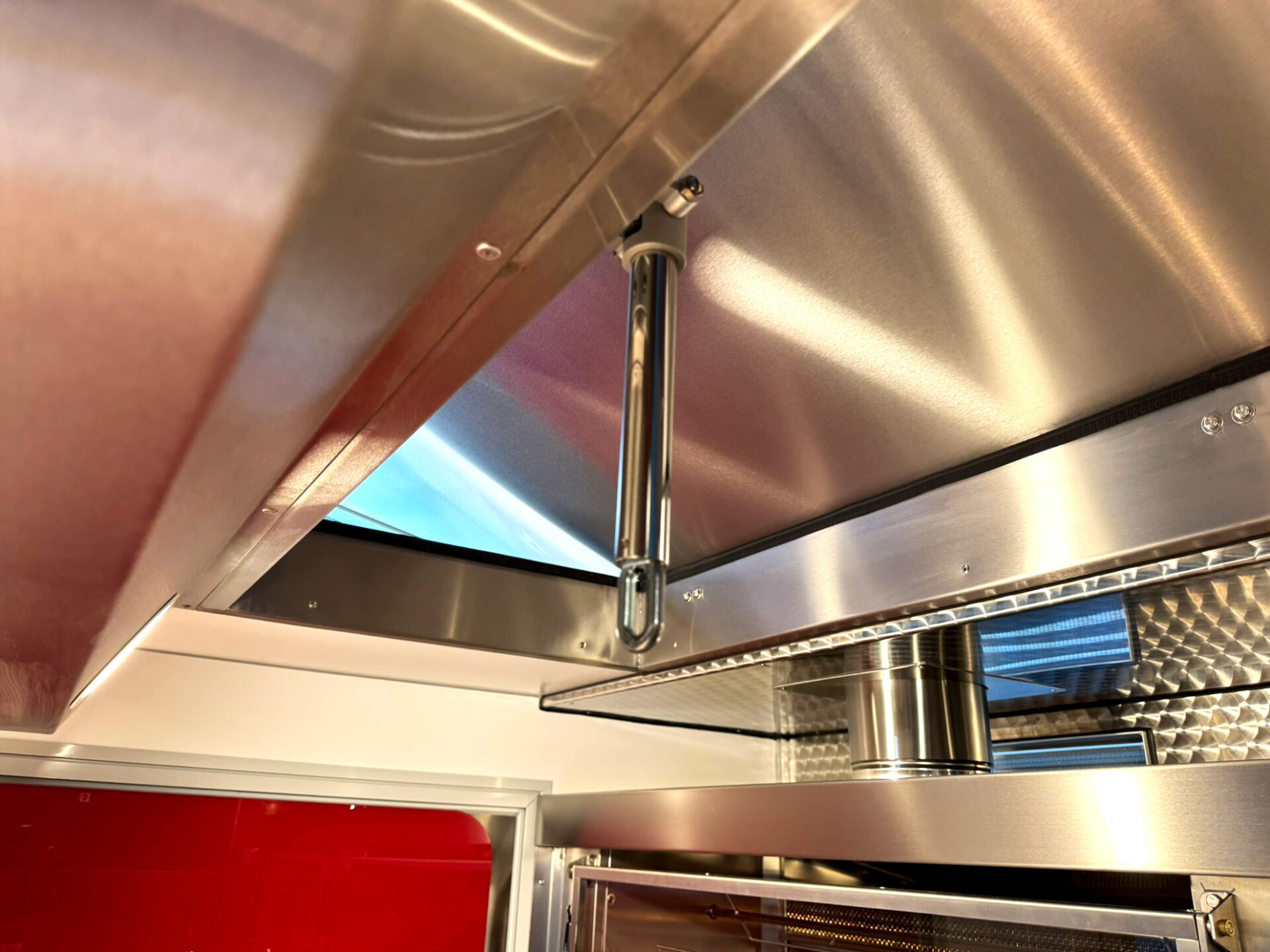 Die moderne LED-Beleuchtung sorgt dafür, dass Sie auch bei schlechten Lichtverhältnissen optimal arbeiten können. Sie beleuchtet den gesamten Arbeitsbereich gleichmäßig und ermöglicht eine angenehme Arbeitsatmosphäre. Gleichzeitig tragen die LEDs zur Energieeffizienz des Hähnchengrillmobils bei, da sie im Vergleich zu herkömmlichen Beleuchtungssystemen weniger Strom verbrauchen.