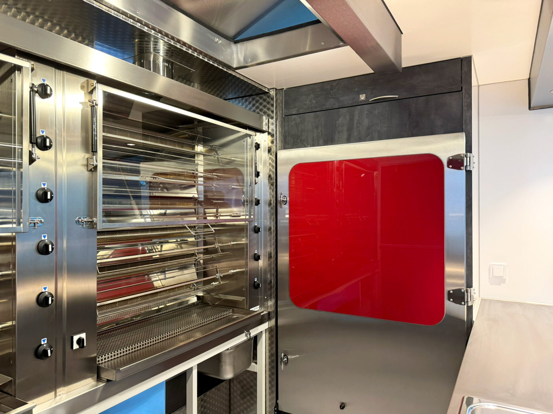 Das Hähnchengrillmobil ist die ideale Lösung für mobilen Grillbetrieb, die Robustheit, Zuverlässigkeit und Effizienz in den Vordergrund stellt. Mit modernster Technik und durchdachtem Design bietet dieses Grillmobil alles, was Sie benötigen, um Ihre Kunden mit frischen, knusprigen Hähnchen und weiteren köstlichen Speisen zu begeistern.