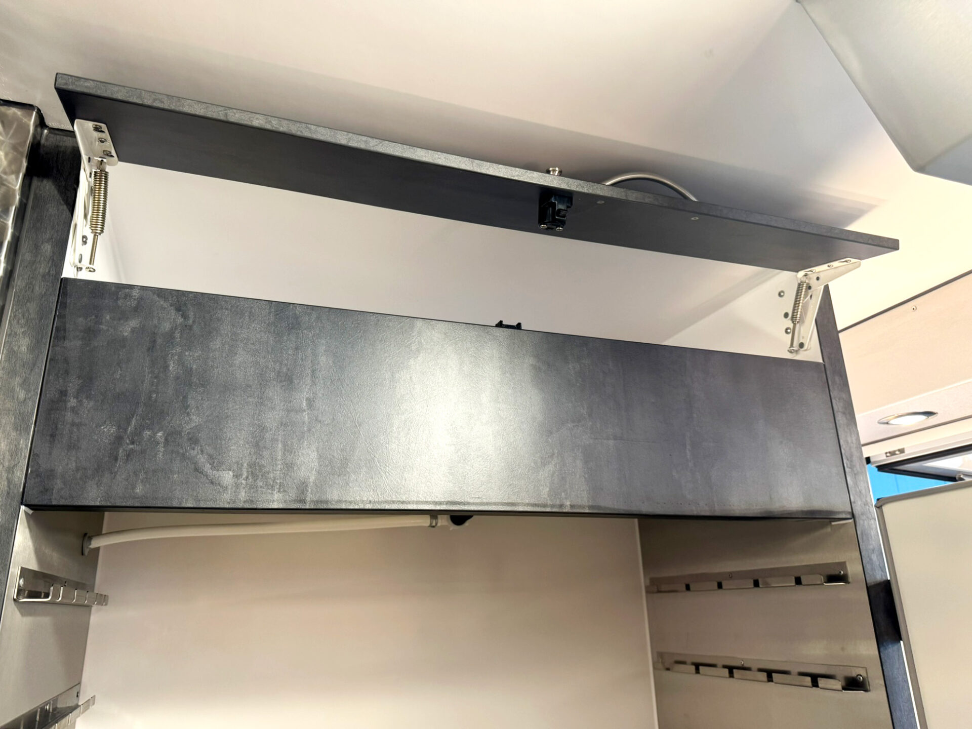 - Staufach über dem Spießkühlschrank, unter dem Kühlschrank Schublade