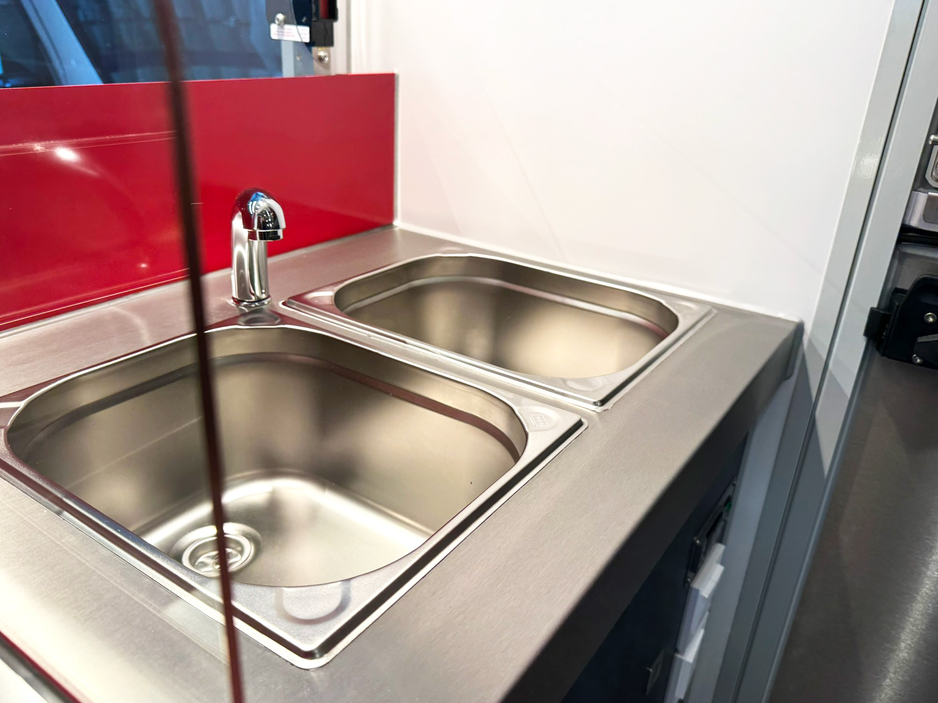 - Hygienepaket mit Edelstahl Doppelwaschbecken