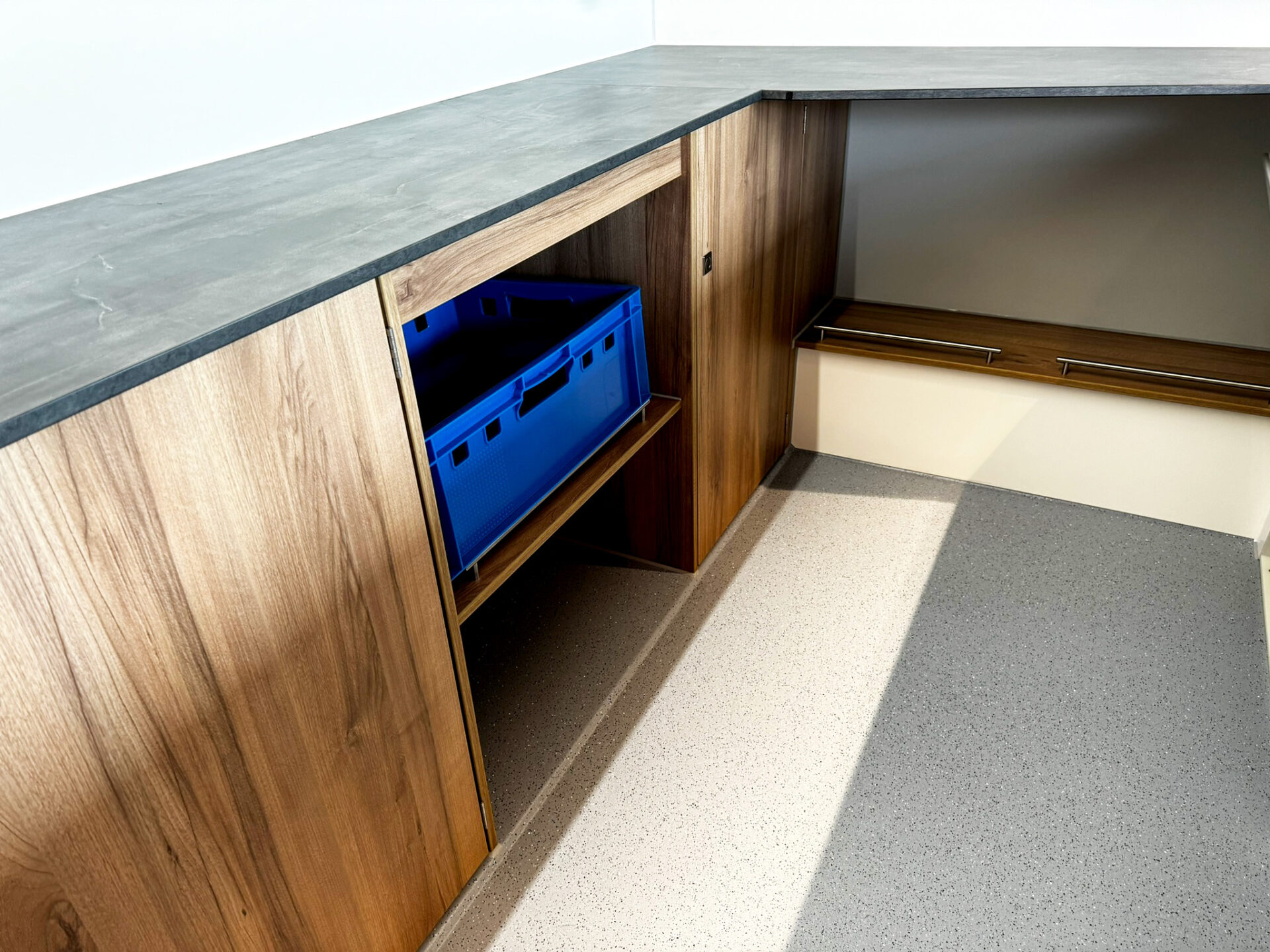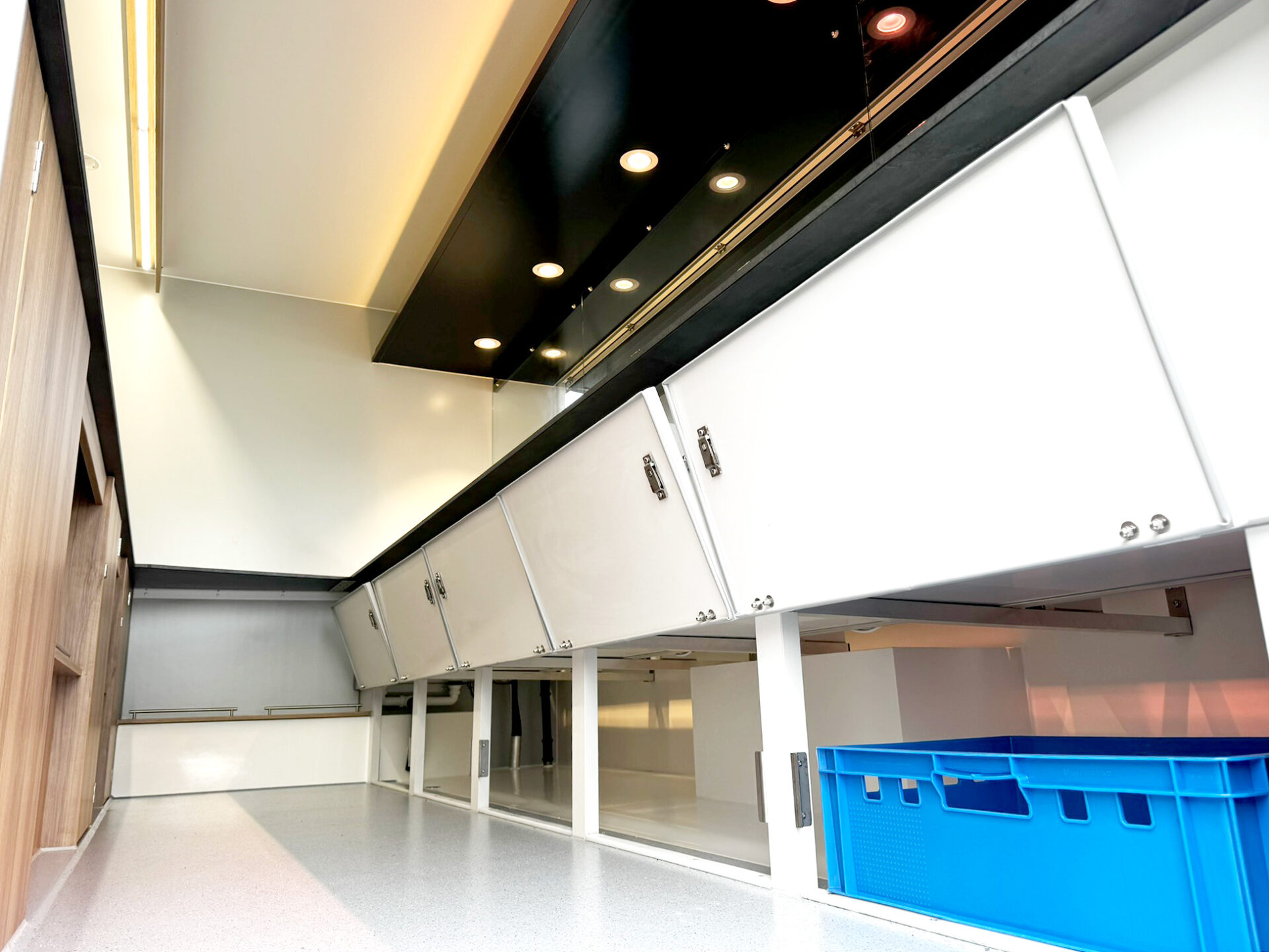 Neben der Thekenauslage mit 4,3 Metern Länge gibt es für den Nachschub eine komplette Unterkühlung der Theke. Hier können Kisten mit einer Menge Nachschub für Ihre Auslage in der Kühltheke des Kühlthekenfahrzeugs gelagert werden, ohne dass die Kühlkette beeinträchtigt wird. Sie profitieren somit von über 8 Metern gekühlter Fläche. Schauen Sie sich dazu gern den detaillierten Vergleich an