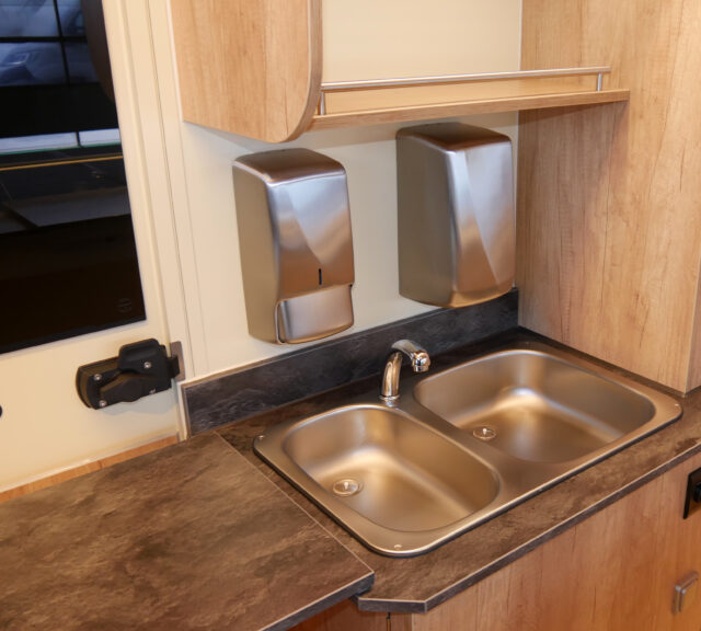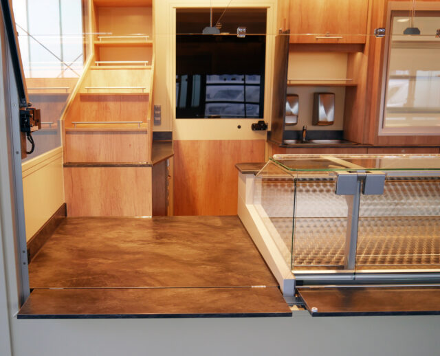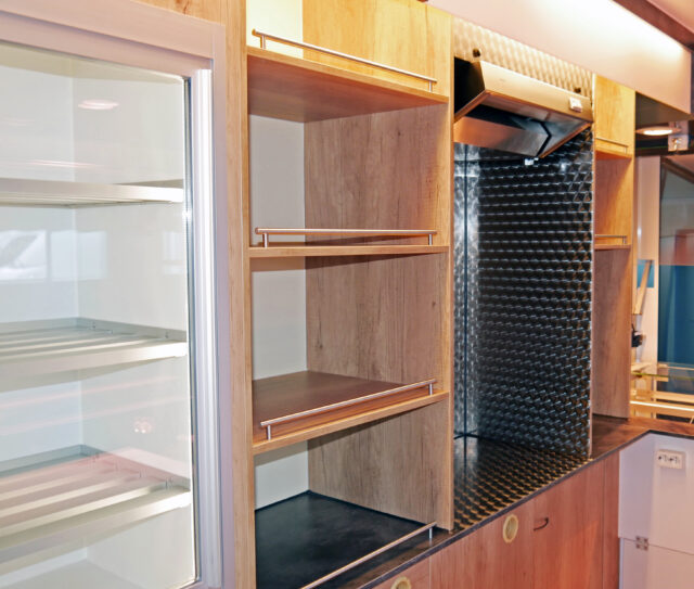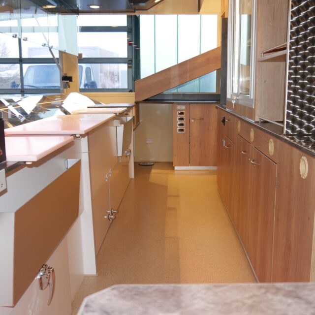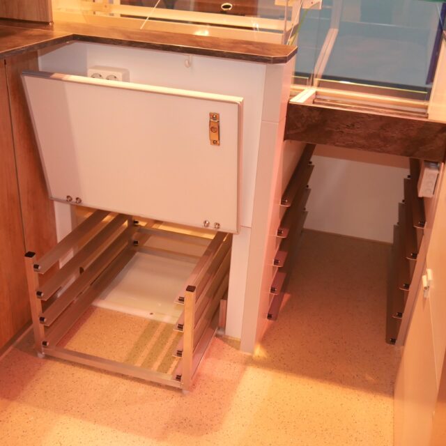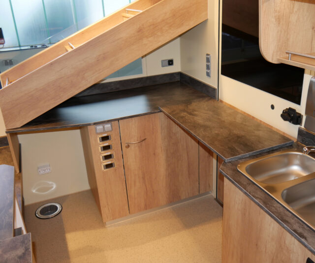 - Komplette Unterkühlung mit nach oben klappbaren Türen und zwei Auszügen